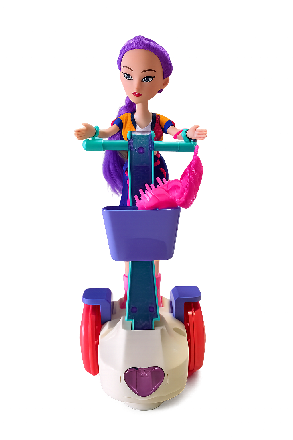 Descobre a incrível Boneca Rumi K-Pop com trotinete musical, o brinquedo perfeito para fãs de K-Pop! Esta boneca interativa anda de trotinete sozinha e toca música K-Pop, proporcionando horas de diversão cheia de ritmo e estilo. Com cabelo roxo vibrante e visual inspirado no universo pop coreano, a Rumi destaca-se pelo seu design moderno e colorido.