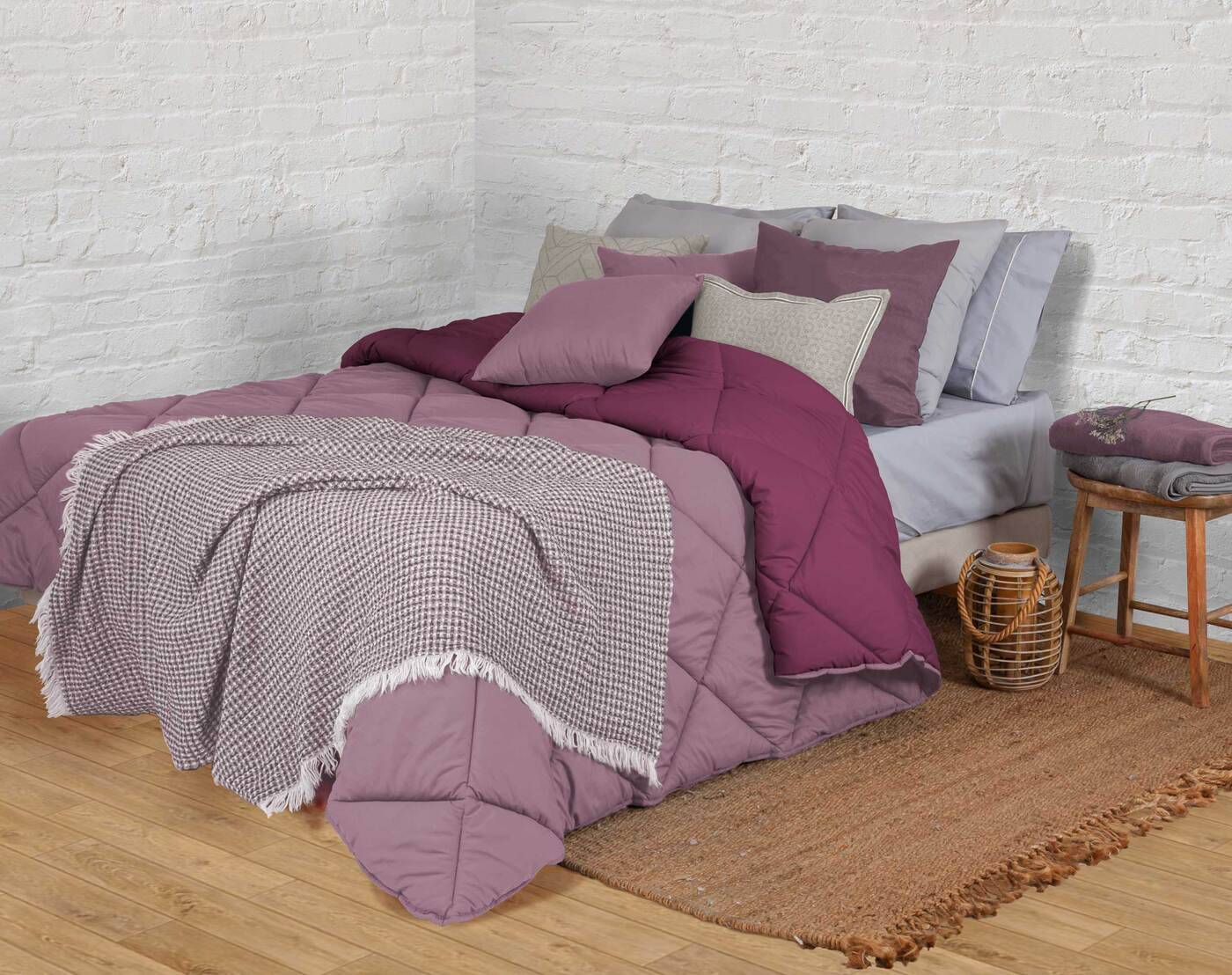 O edredom de aquecimento dupla face bicolor Lilás e Rosa Escuro é um edredom versátil pois num dos lados é Lilás e do outro é Rosa Escuro. É um edredom simples, bonito, elegante e quentinho.